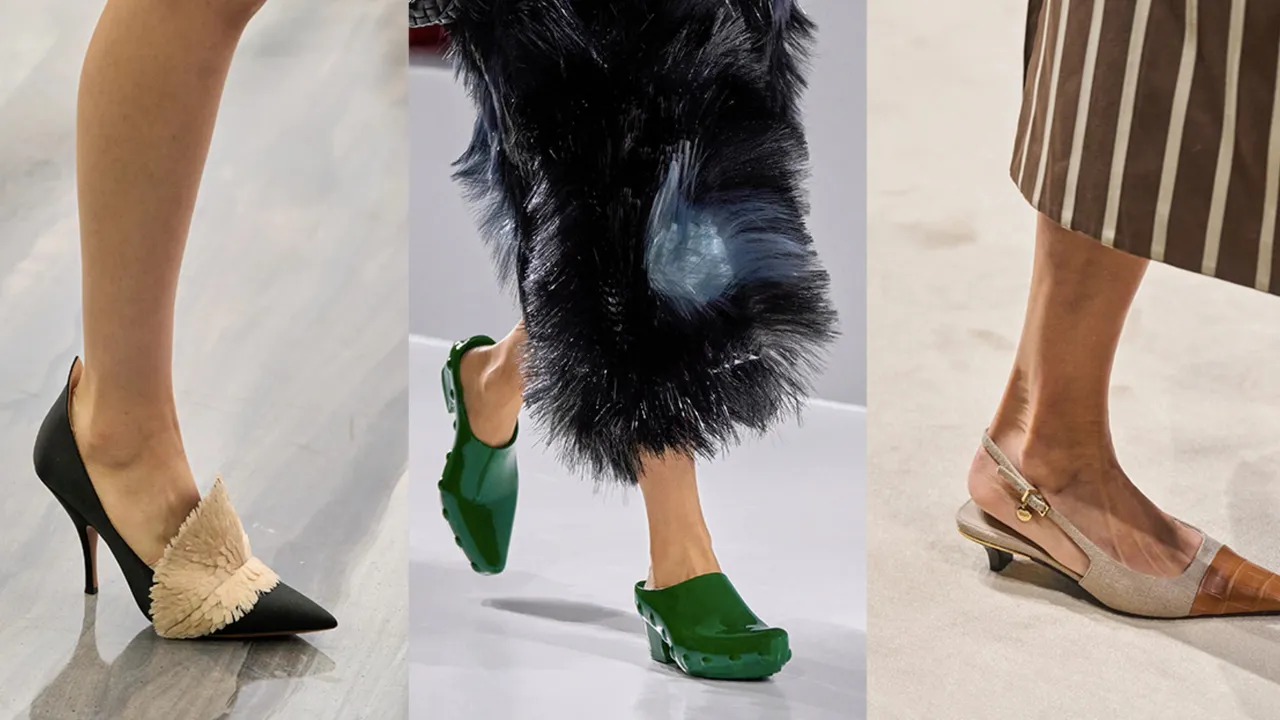 Los zuecos, herencia de la cultura holandesa, regresan con fuerza, presentándose con punteras afiladas y una paleta vibrante que incluye verde y amarillo. Bottega Veneta y Victoria Beckham han mostrado colecciones donde el tacón de madera y los estilos contemporáneos se combinan, subrayando la elegancia y el confort, desde versiones en charol hasta aquellas con correas doces de Miu Miu.