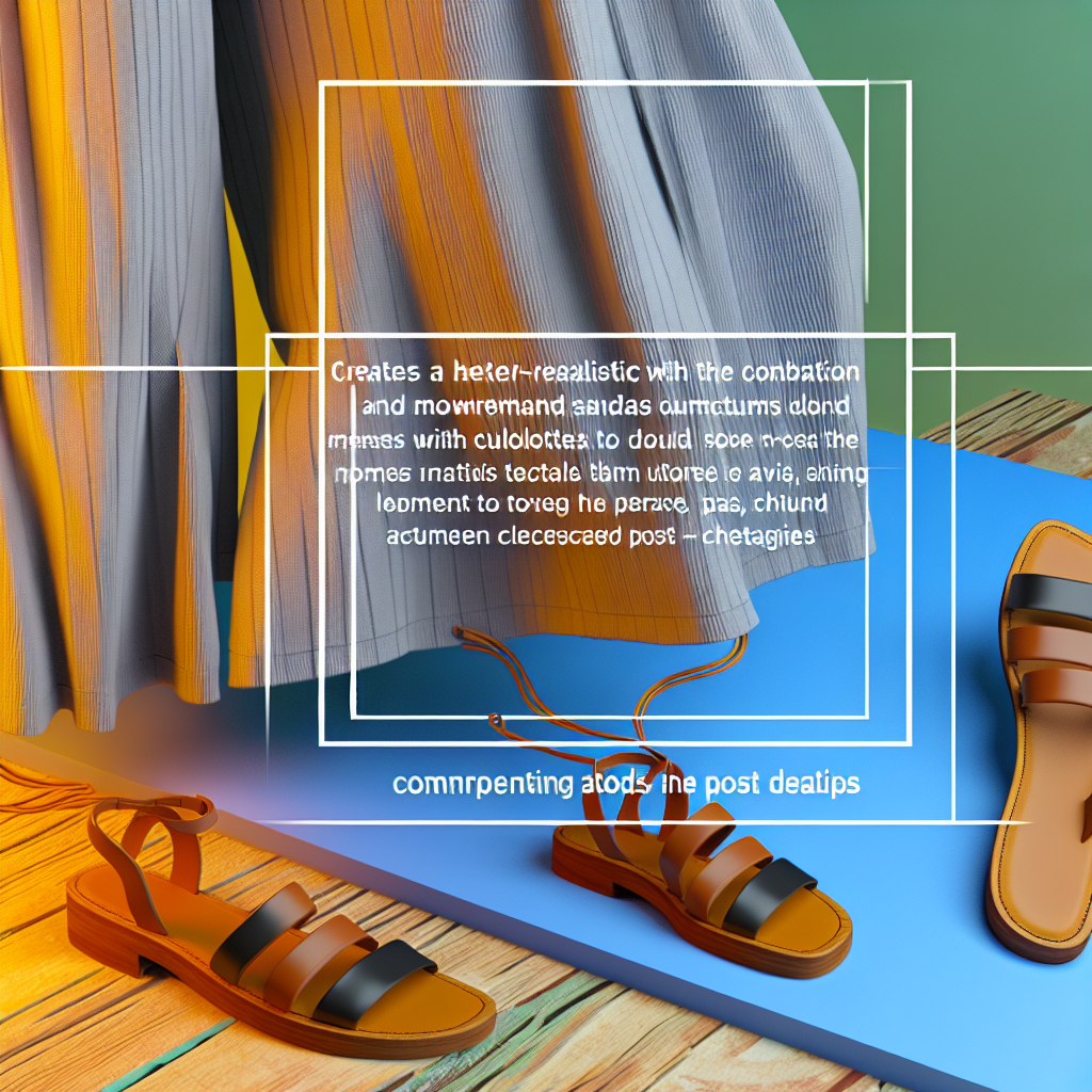 Una de las mejores estrategias al combinar pantalones culotte con sandalias es jugar con las proporciones. Una sandalia de plataforma o un tacón bajo puede elevar el look, mientras que una sandalia plana aporta un toque casual y relajado. Además, el uso de colores y texturas también puede marcar una gran diferencia en el impacto visual. Las combinaciones de tonos neutros para un look más sofisticado, o patrones vibrantes para un estilo más divertido, son solo algunas de las posibilidades.