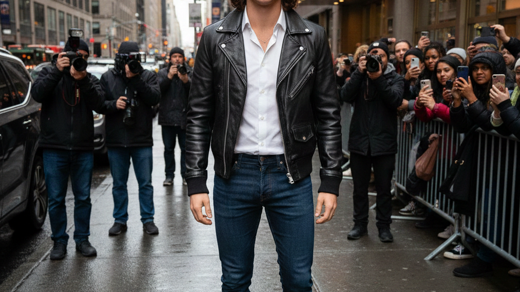 Al salir de The Today Show en Nueva York, Storrie lució una chaqueta de cuero negro con un acabado acanalado en la parte inferior, combinada con una camisa de vestir inmaculada. Los jeans, de un tono que todo hombre debe tener en su guardarropa, y las botas cuadradas aportaron una esencia robusta. Pero, sin duda, el verdadero protagonista de su look fue su cabello, que destilaba tanto perfección como un toque de despreocupación.