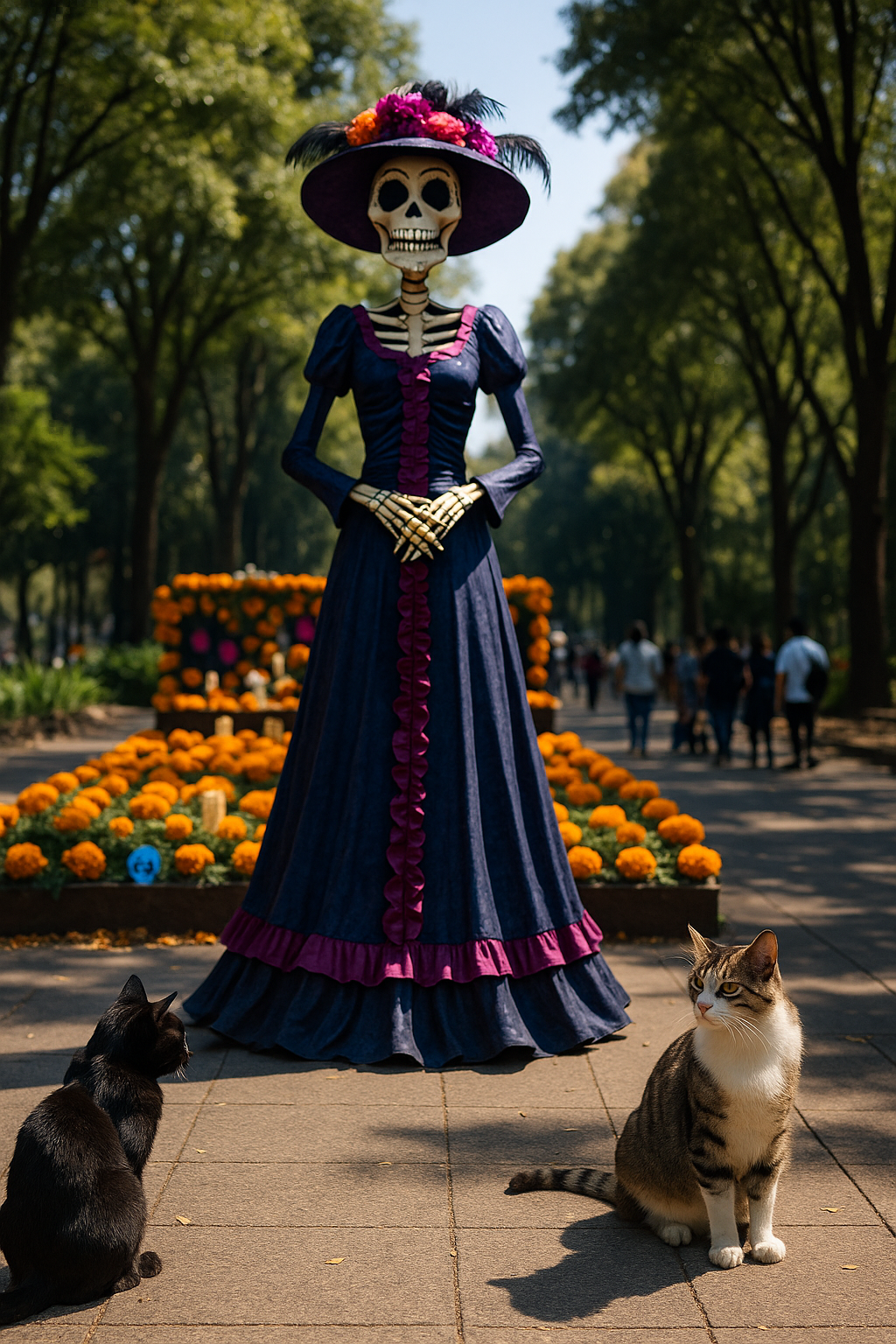 Otro destino llamativo es Atlixco, también en Puebla, famoso por el Valle de las Catrinas. Cada año, el pueblo organiza una impresionante muestra monumental que incluye esculturas gigantes, tapetes florales y desfiles temáticos. Esto permite a los visitantes pasear por calles decoradas con flores mientras disfrutan de una gastronomía que incluye delicias como el mole poblano.