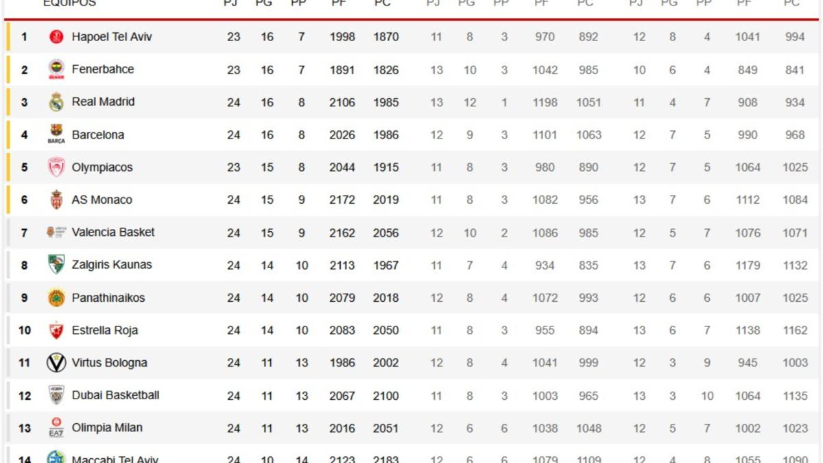 La lucha por los primeros puestos se intensifica, ya que el Fenerbahce también se encuentra en la contienda, actualmente en la segunda plaza con 16 triunfos y un partido menos. Por su parte, el Olympiacos, con 15 victorias y también un partido aplazado, acecha desde la quinta posición y se prepara para enfrentar al Barcelona este jueves, un encuentro que promete ser fascinante.