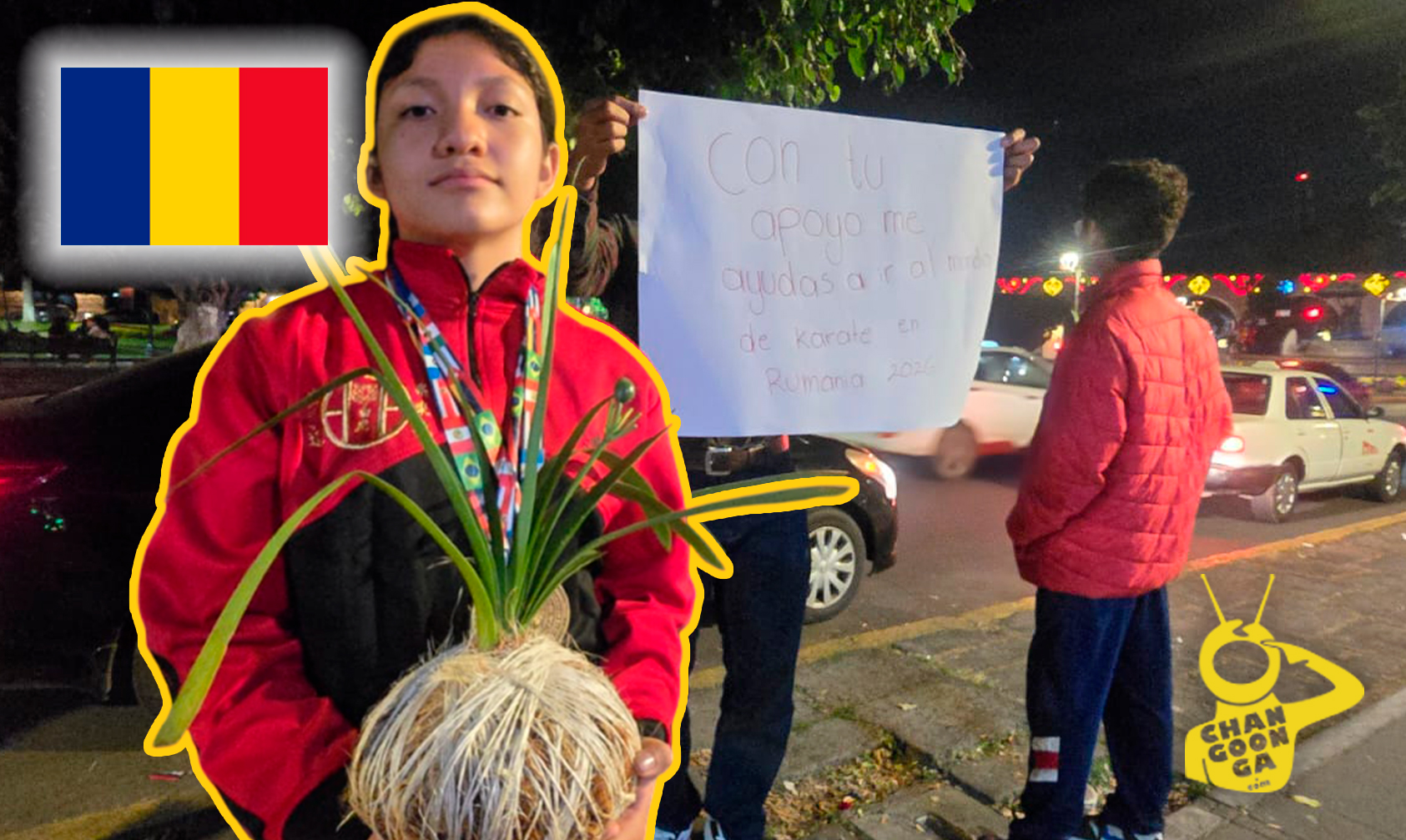 Con su uniforme de karate y medallas que cuelgan de su cuello, Regina sostiene un cartel que expresa su objetivo: “Con tu apoyo me ayudas a ir al Mundial de Karate en Rumania 2026”. Su esfuerzo no pasa desapercibido; junto a su madre y dos hermanos, está vendiendo plantas en macetas artesanales, un pequeño negocio que han emprendido para financiar su viaje.
