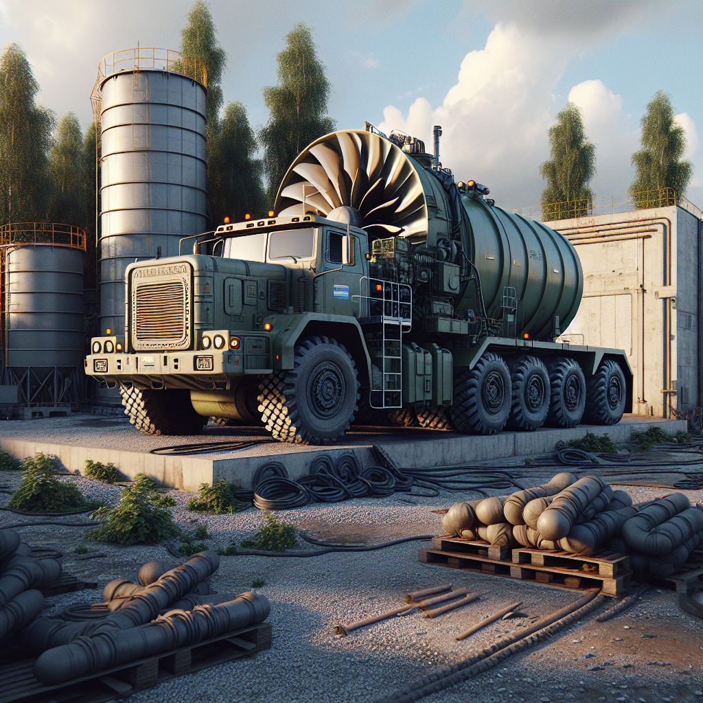 Rusia utiliza un camión con turbina para limpiar tanques.