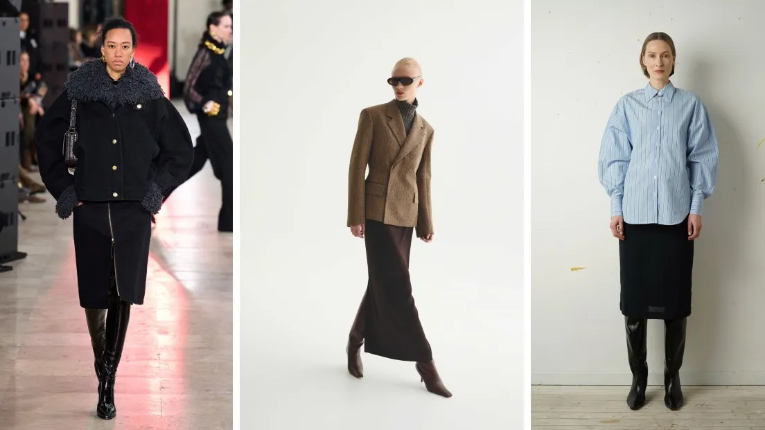 La clave para estilizar correctamente esta combinación radica en el juego de proporciones. Afortunadamente, las pasarelas ofrecen un sinfín de ideas sobre cómo lograr una apariencia impecable. Por ejemplo, Miu Miu se adentra en el uso de faldas rectas de tweed con cuadros, mientras que Toteme opta por colores neutros y siluetas limpias. Por su parte, Patou introduce la mezclilla con cierres decorativos. Estas propuestas reafirman el poder de las botas, icónicas y siempre llenas de un toque dramático.