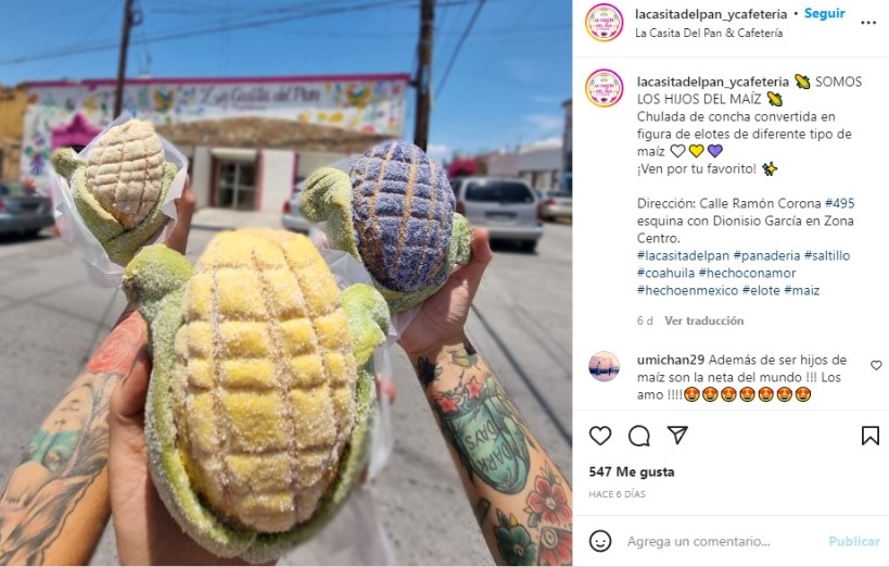 La Casita Del Pan & Cafetería publicó en su cuenta de Instagram lo que promociona como “chulada de concha convertida en figura de elotes de diferente tipo de maíz”.