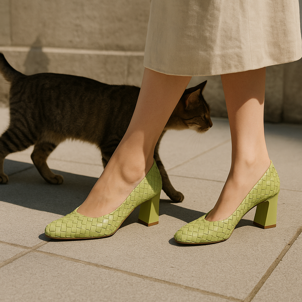 Otro modelo que se presenta son las sandalias thong de cuero trenzado con tacón de aguja. Este diseño, que recuerda a las sandalias de surfista del verano anterior, está dirigido a aquellas que buscan una pieza de declaración que eleve su vestuario. Las sandalias se pueden combinar con vestidos primaverales o jeans anchos, creando un look contemporáneo y chic.